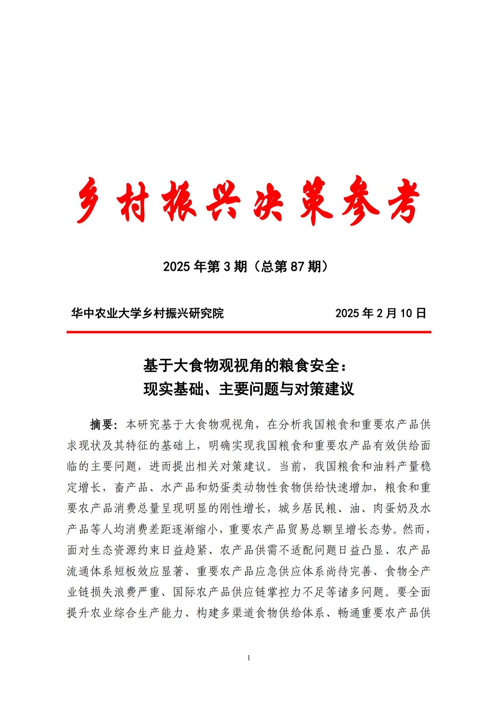 乡村振兴决策参考2025年第3期(总第87期)基于大食物观视角的粮食安全:现实基础、主要问题与对策建议